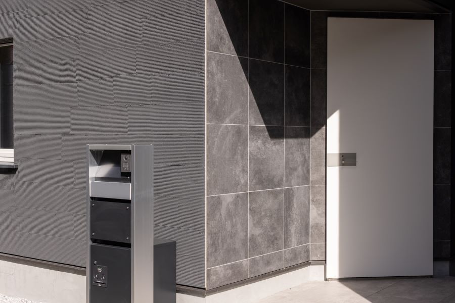 鋼板に粉体塗装し、内部には断熱性/防火性能を重視しグラスウールを使用しています。よりシンプルな外観にするため正面から見ると枠が見えない構造になっています。