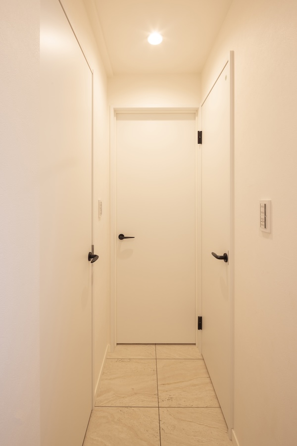 扉が枠から持ち出しているため、地震による家の歪みでドアが開けられないなど起きづらい免震構造。