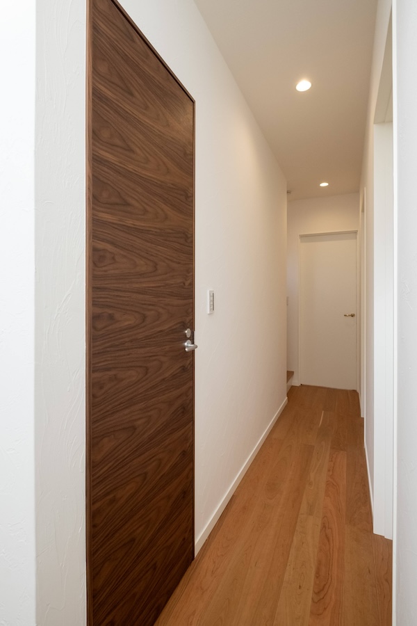 40㎜厚の突板制のドア。しっかりとした重量感があり、閉じたときの手応えや音に品質を感じていただけます。天然のウォルナットの突板に柔軟性のあるウレタン塗装仕上げ。ウォルナットは表面が固く、昔から高級素材として重宝されてきた木のひとつです。