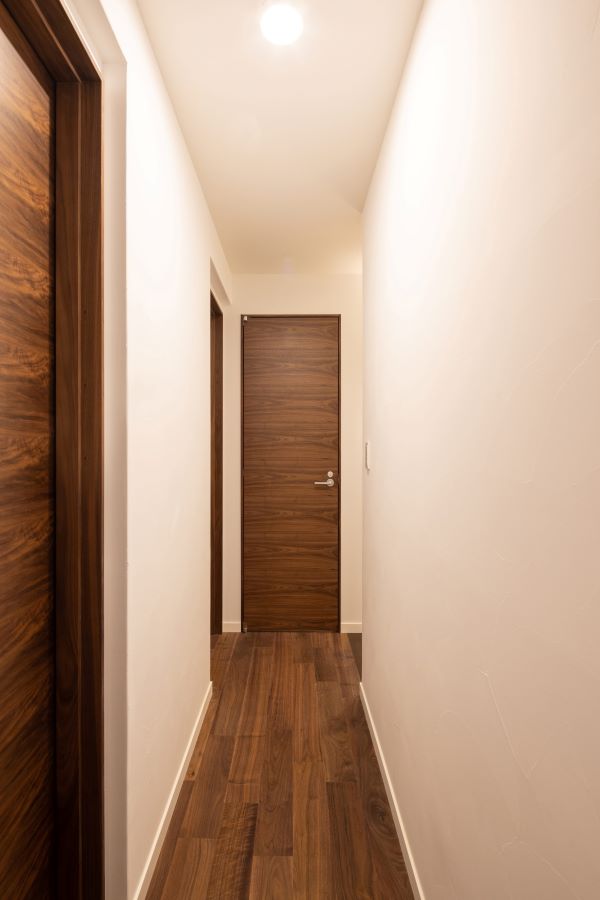 40㎜厚の突板制のドア。しっかりとした重量感があり、閉じたときの手応えや音に品質を感じていただけます。天然のウォルナットの突板に柔軟性のあるウレタン塗装仕上げ。ウォルナットは表面が固く、昔から高級素材として重宝されてきた木のひとつです。
