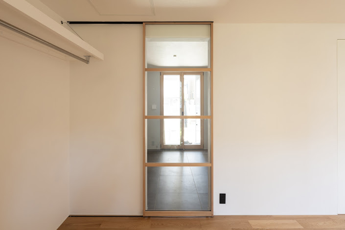 ドアとしてはもちろん、収納間仕切り、オフィスのパーテーション等、アイデア次第で様々な使い方が出来ます。すべて受注生産のため、カラー、素材も豊富な中からお選びいただけます。標準modenaのガラスに国産杉のフレームでお作りします。和テイストのお部屋にもマッチします。