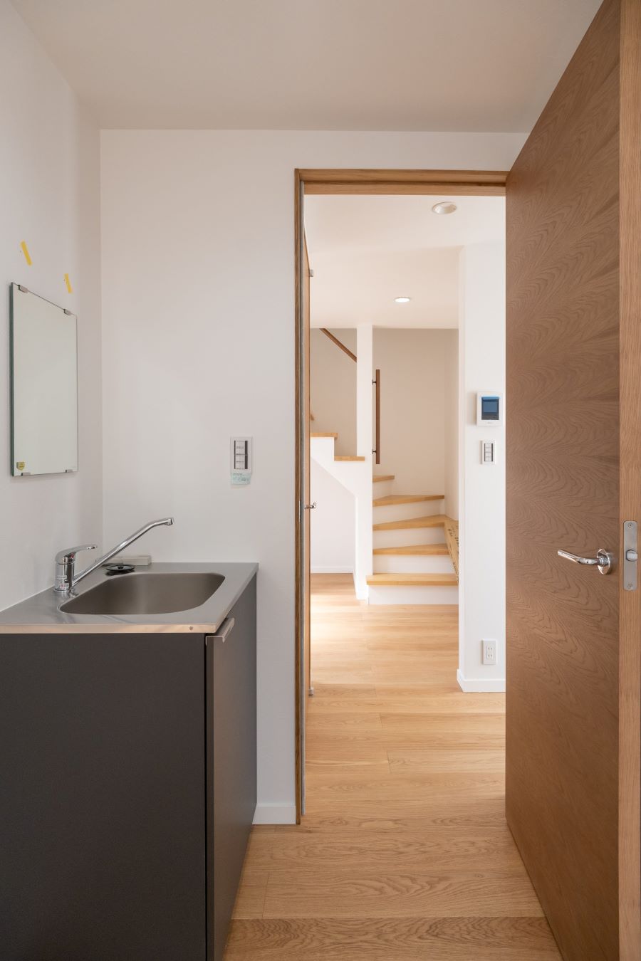 40㎜厚の突板制のドア。しっかりとした重量感があり、閉じたときの手応えや音に品質を感じていただけます。天然のウォルナットの突板に柔軟性のあるウレタン塗装仕上げ。ウォルナットは表面が固く、昔から高級素材として重宝されてきた木のひとつです。