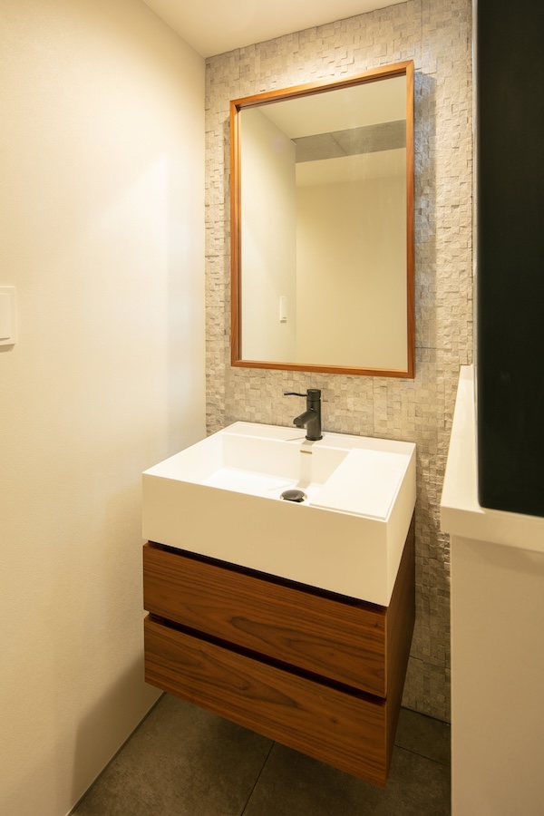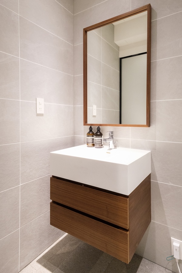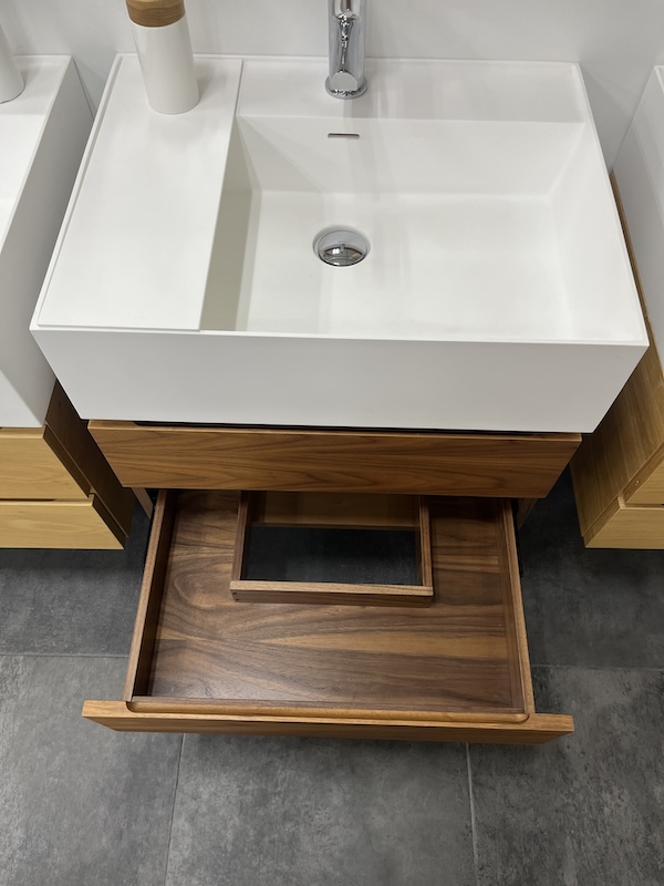 凹凸のない取っ手を採用し、天然の突板の上にウレタン塗装を施しました。