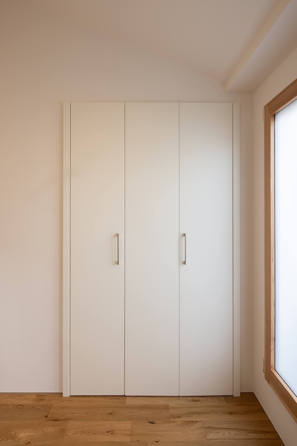 C-DOCK用の枠とケーシング。「収納扉はドアではなく家具である」というコンセプトでデザインされました。柔軟性のあるウレタン塗装仕上げ。シンプルなホワイト塗装で、壁紙、フローリングと組合せのしやすい商品です。