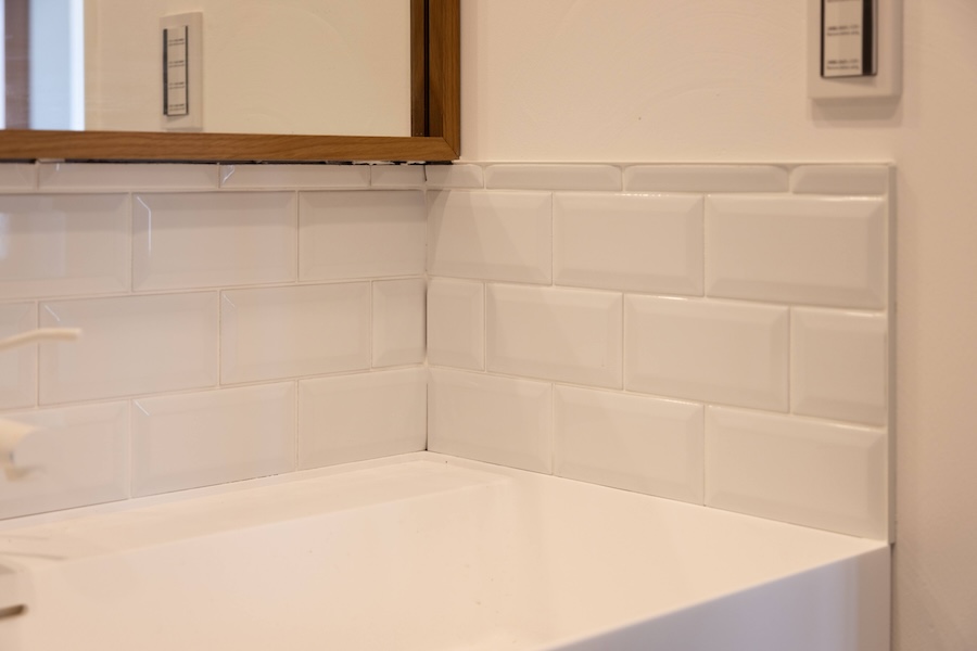 内部壁 :○ 内部床:× 外部壁 :○ 外部床 :× 防滑性 :△ 面取りされた光沢のあるホワイトコーティング。表面はすべて本磨きで、高級感を演出します※貼り:突きつけは不可です。