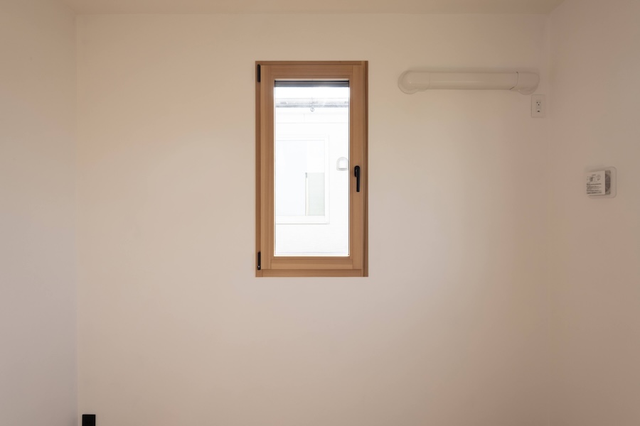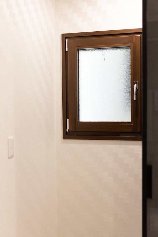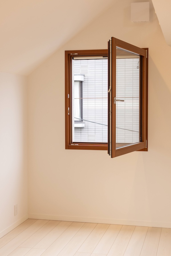 内開き、内倒し(ドレーキップ )の窓です。窓枠の左右どちらかを軸として開閉する窓。